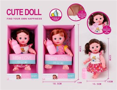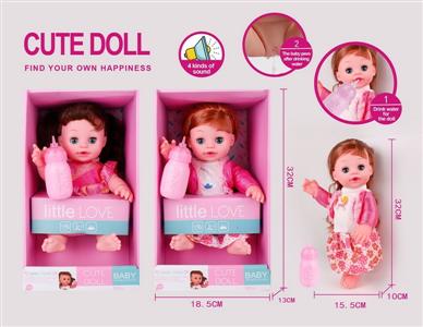 14寸(30cm)喝水尿尿全搪胶公仔娃娃套装2款混装带IC(包AG13*3粒)