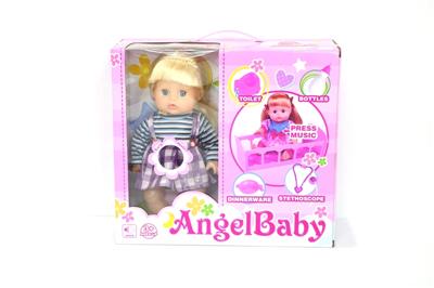14寸搪胶喝水小便带IC娃娃公仔(配组装好餐台)