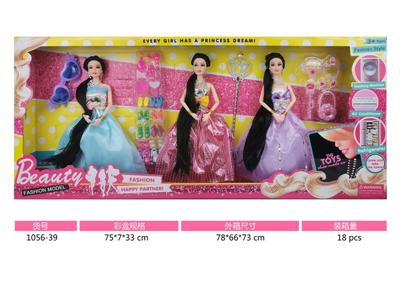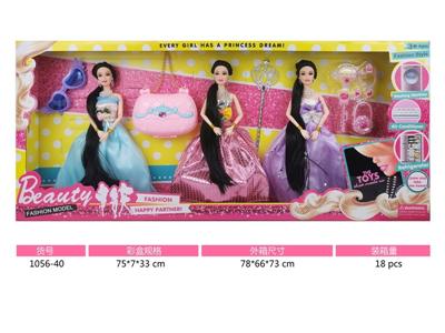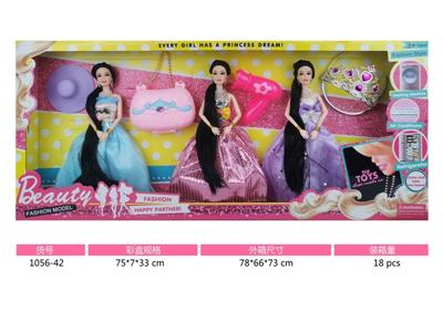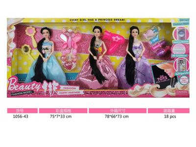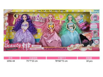 11寸实身九关节小腿长发公主芭比娃娃3人装