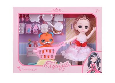 11.5寸实身活手3D真眼珠皮草大衣芭比带宠物 4款混装
