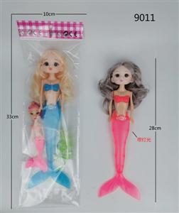 11寸实身带灯光七彩长辫3D眼美人鱼芭比娃娃