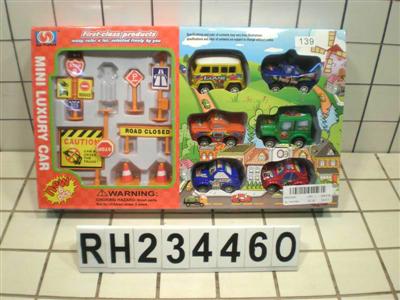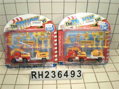 一只回力工程车+拖车+路标