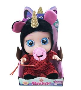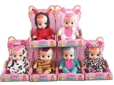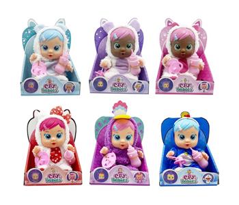 9寸搪胶哭泣娃娃会喝水真流眼泪带四声音乐带摇床奶瓶6款混装