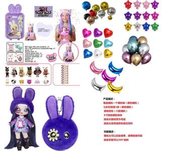 8寸全搪胶爆枕娃娃配吹气棒配铝气枕配宠物背包1款6PC混装双吸塑菲林盒
