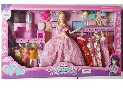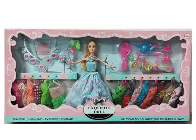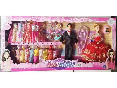 11.5寸实身活手婚纱裙子芭比双人装带吊衣和梳妆配件吸塑和鞋子眼镜配件