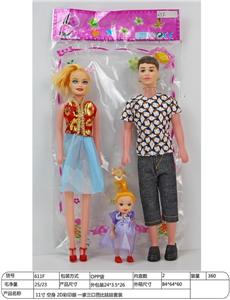 11寸 空身 2D彩印眼 一家三口芭比娃娃套装