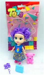 OPP彩袋单只7寸大眼妹(假发)配小熊,小风车,发扎