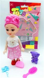 OPP彩袋单只7寸娃娃(假发)配小熊,小风车,发扎,假发