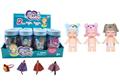 香蕉塑料罐搪胶可爱食物睡娃公仔带奶瓶带包带眼镜6款混装24PC带喝水拉尿功能