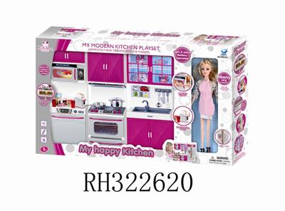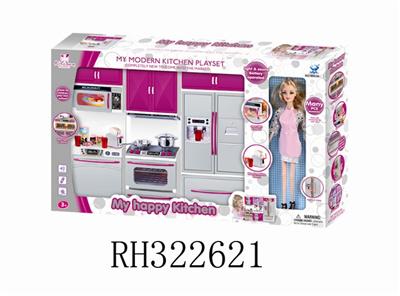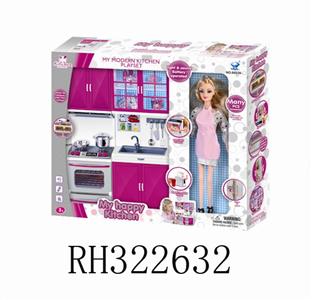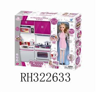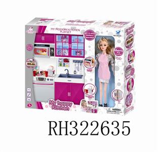 冰箱+洗菜盆+微波炉+配芭芘(灯光音乐配3粒AG13电子)