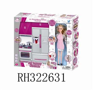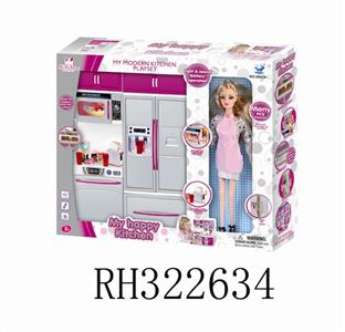 冰箱+洗菜盆+烤炉+配芭芘(灯光音乐配2粒7号电池)