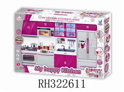 冰箱+洗菜盆+微波炉+烤炉(灯光音乐配2粒7号电池)