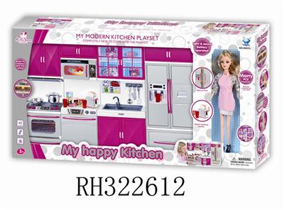 冰箱+洗菜盆+微波炉+烤炉+配芭芘(灯光音乐配2粒7号电池)