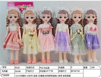 12寸30厘米 13关节 实身 3D真眼 戴眼镜+发带头饰萝莉 四款混装