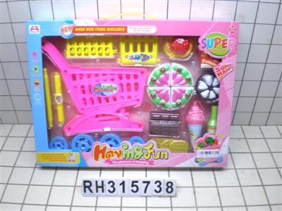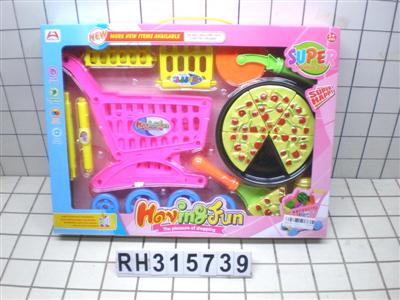 卡通购物车配蛋糕披萨西餐