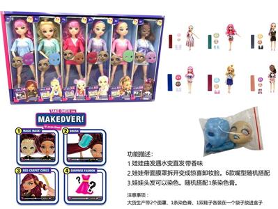 6寸实身3D真眼珠变脸化妆时装芭比头发带香味