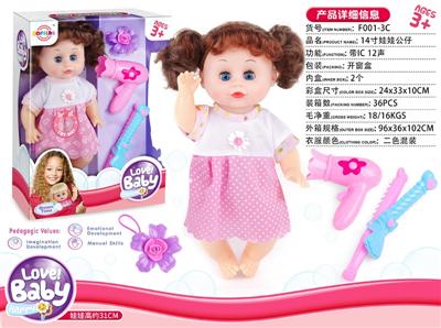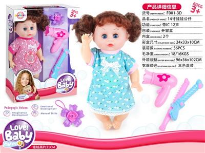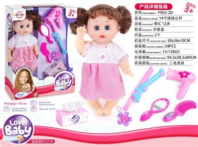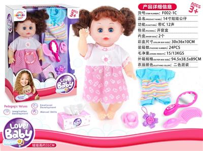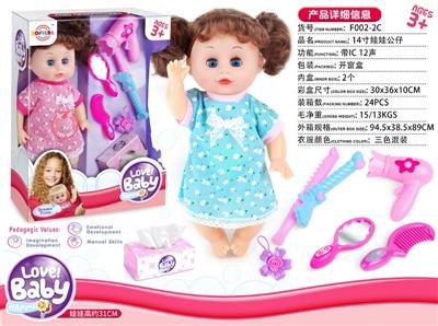 14寸娃娃公仔 挂衣+梳镜+奶嘴+花夹+纸巾盒 带IC 12声 包电