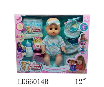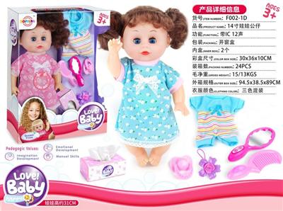 14寸娃娃公仔 奶嘴+奶瓶+食盘+便盆+配中床 带IC 12声 包电