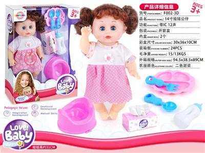 14寸娃娃公仔 食盘+奶瓶+纸巾盒+便盆 带IC 12声 包电