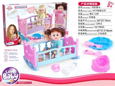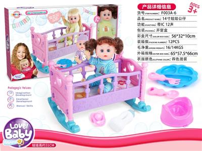 14寸娃娃公仔 奶嘴+奶瓶+食盘+便盆+配大床 带IC 12声 包电