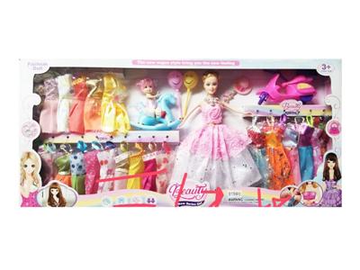 12寸12声少女穿鞋娃娃洋气套装+梳镜套装等