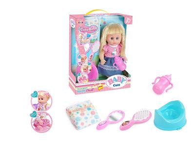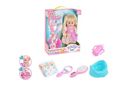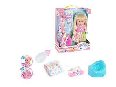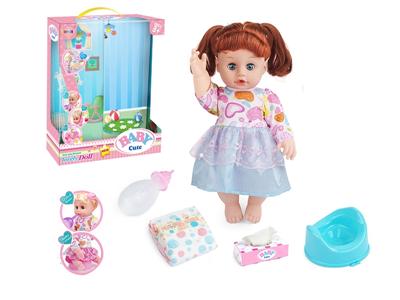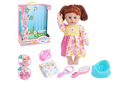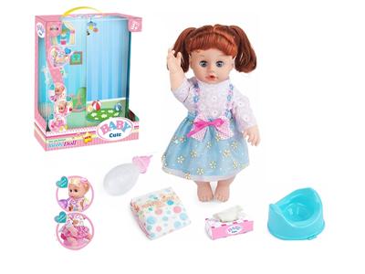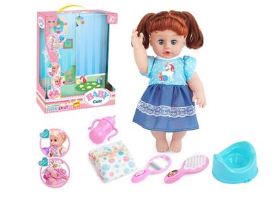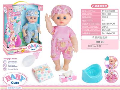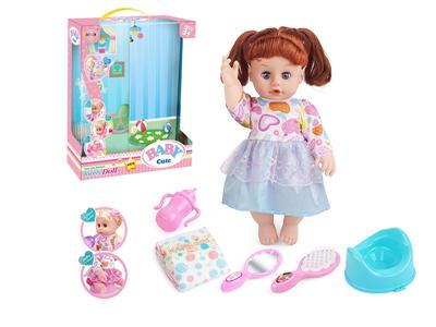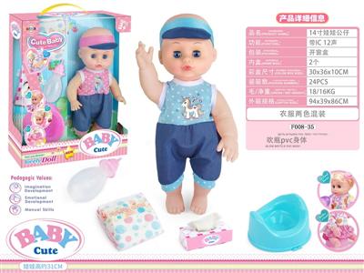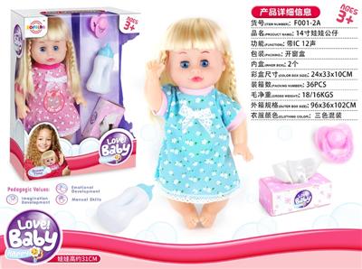 14寸活眼娃娃公仔 尿片+纸巾盒+便盆+奶瓶 带IC 12声 包电