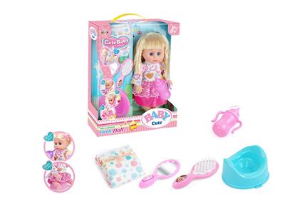 14寸活眼娃娃公仔 尿片+梳镜+便盆+奶瓶 带IC 12声 包电