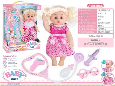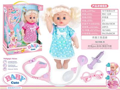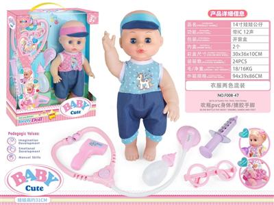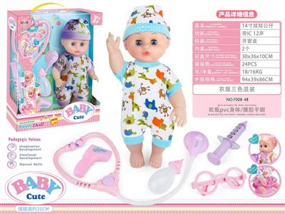 14寸活眼娃娃公仔 听诊器+眼镜+注射器+测温器+奶瓶 带IC 12声 包电