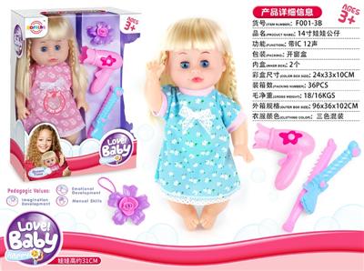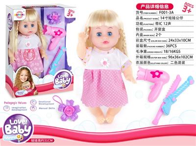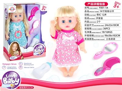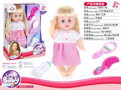 14寸娃娃公仔 梳镜+奶瓶 带IC 12声 包电