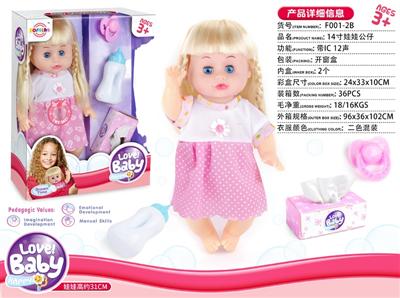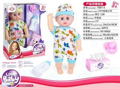 14寸娃娃公仔 奶嘴+奶瓶+纸巾盒 带IC 12声 包电