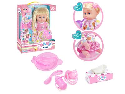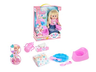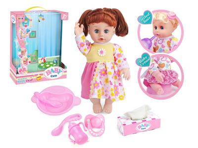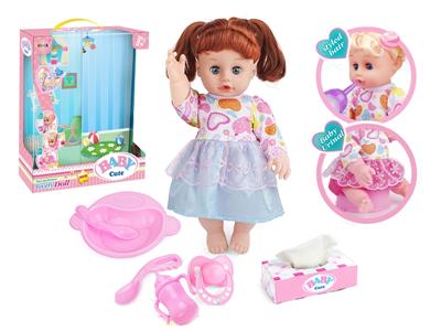 14寸活眼娃娃公仔 尿片+餐盘+纸巾盒+便盆+奶瓶 带IC 12声 包电