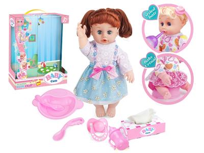 14寸娃娃公仔 奶嘴+餐盘+纸巾盒 +奶瓶 带IC 12声 包电