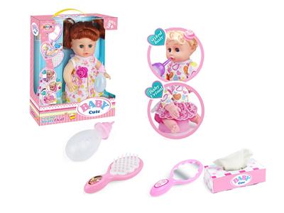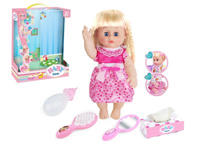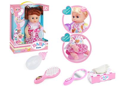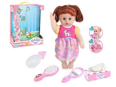 14寸娃娃公仔 梳镜+奶瓶+纸巾盒 带IC 12声 包电