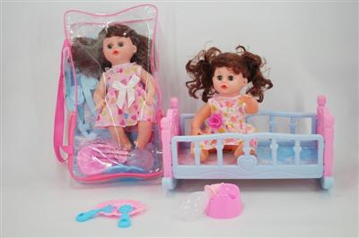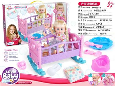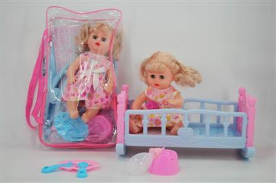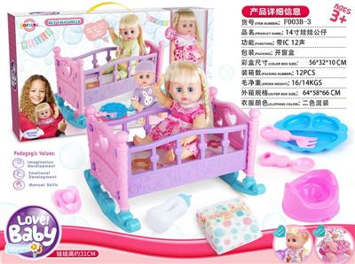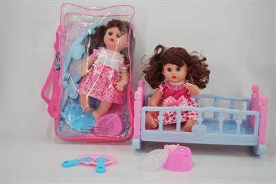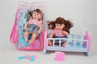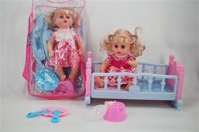 14寸娃娃公仔 奶嘴+奶瓶+食盘+便盆+尿片+配大床 带IC 12声 包电