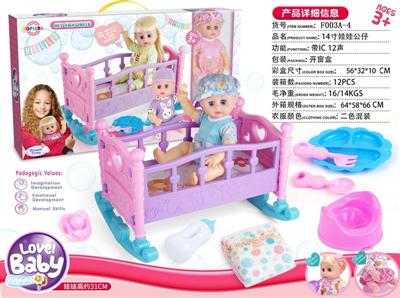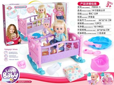 14寸娃娃公仔 中床+奶瓶+便盆+餐盘 带IC 12声 包电
