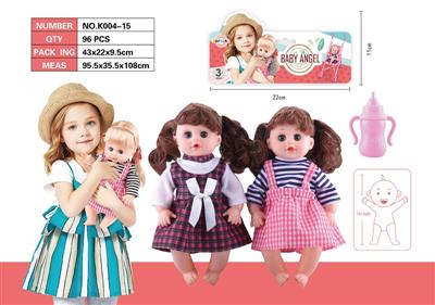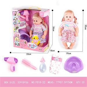 16寸空身娃娃 奶嘴+大梳大吹筒+ 奶瓶+ 大便盆+尿片 12声IC 包电