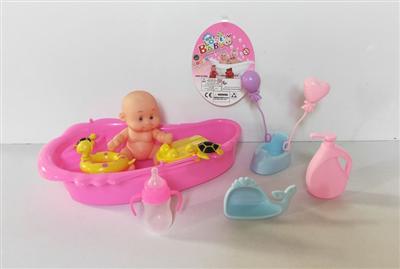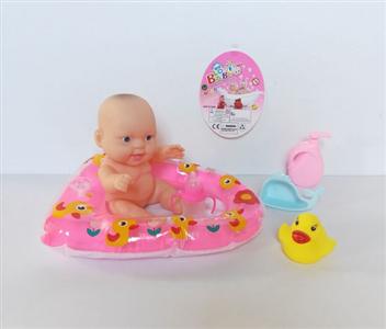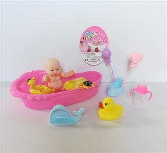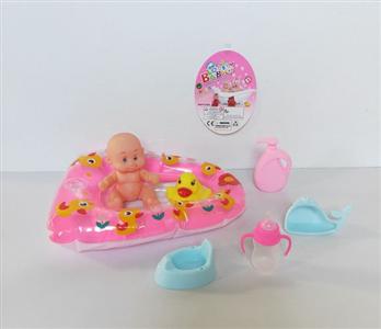 搪胶睡娃配冲气浴盆过家家套装