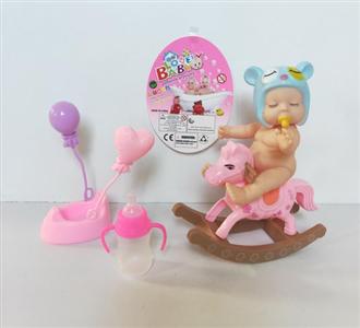搪胶睡娃配摇马过家家套装