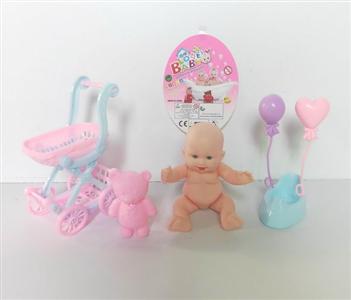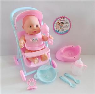 10寸搪胶娃娃配推车过家家套装