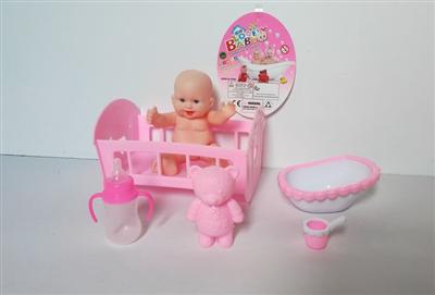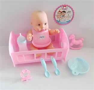 10寸搪胶娃娃配睡床过家家套装