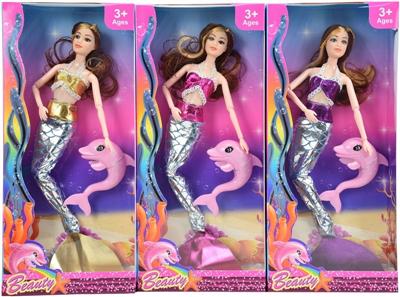11.5寸实身美人鱼公主带海豚宠物3款混装