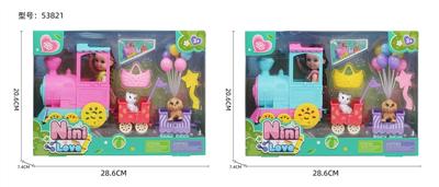 6寸娃娃芭比配火车车箱气球梳子袋子猫狗