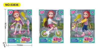 6寸娃娃芭比活关节配单车梳子帽子滑板车扭扭车踏板车3款混装
