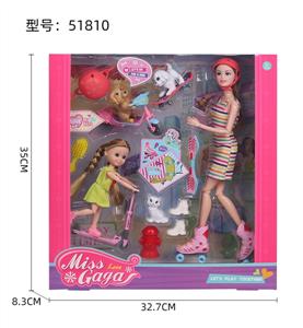 11.5寸活关节娃娃芭比配6寸活关节娃娃芭比踏板车大狗小狗滑板帽子扭扭车