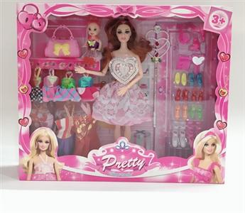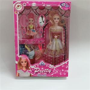高档大盒11.5寸实身活手随机时尚裙双人芭比 带3寸仔和配件 8吊裙