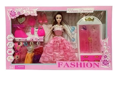 高档大盒11.5寸实身活手随机时尚裙单人芭比 带衣柜和大项链 带吊裙