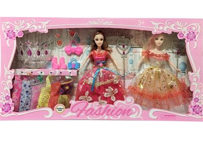 高档大盒11.5寸实身活手随机时尚裙双人芭比 带大皇冠和公主套装配件 吊裙