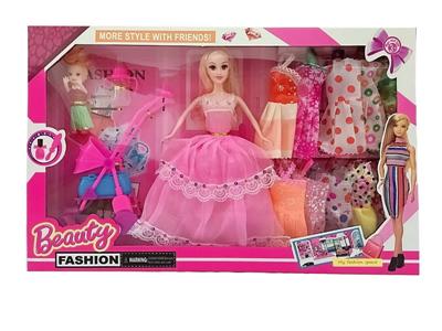 高档大盒11.5寸实身活手随机时尚裙单人芭比 带3寸仔和手推车 带吊裙