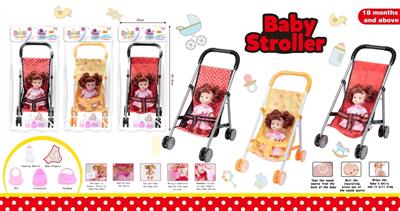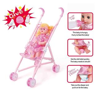 婴儿手推车+公仔IC(配奶瓶、尿不湿、马桶、手提、围脖)三色混装