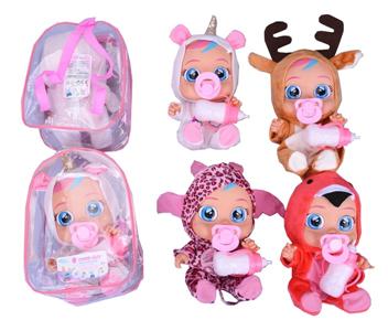 14寸书包搪胶带音乐会流眼泪哭泣娃娃配奶瓶奶嘴四款混装
